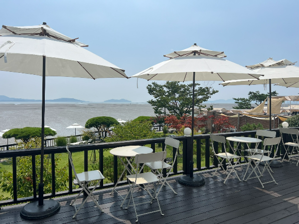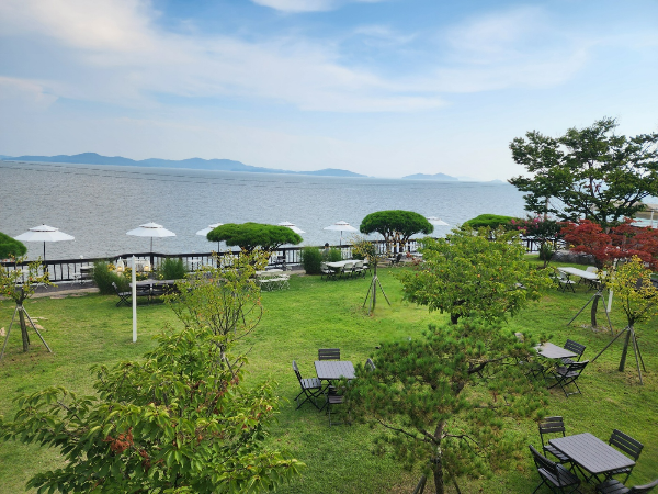테라스와 야외 좌석 - 야외 테라스와 정원도 마련되어 있어 날씨가 좋은 날에는 자연을 직접 느끼며 커피를 즐길 수 있습니다. 특히 바다와 산이 어우러진 풍경이 일품입니다.