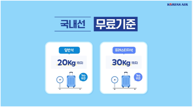휴대수하물 무게 : 가방의 총무게의 합이 10 kg 이내