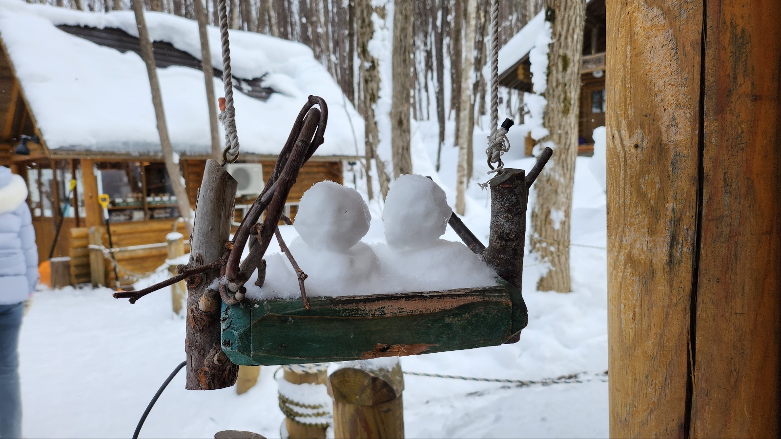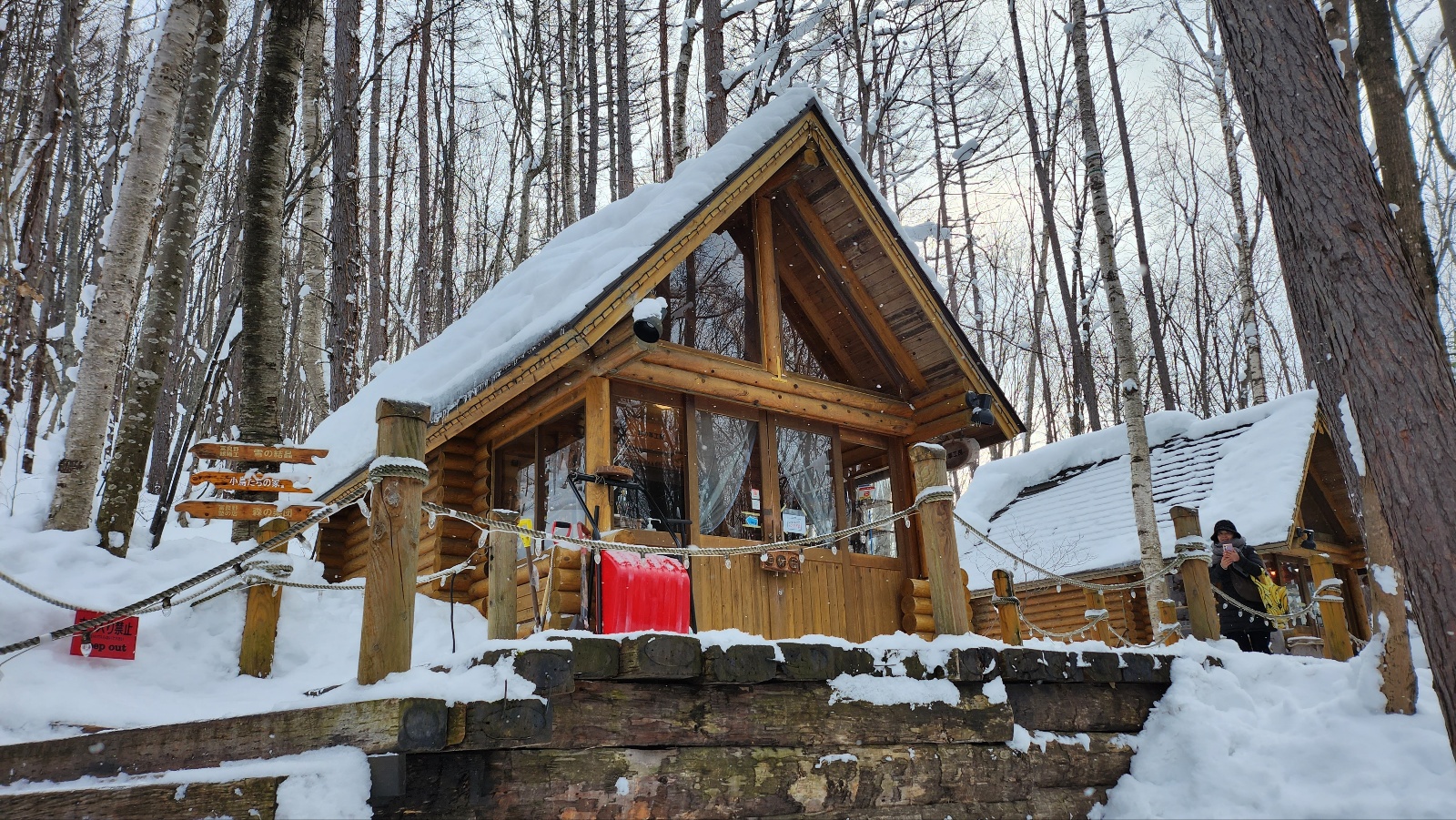 겨울 눈이 소복이 쌓인 닝구르 테라스는 20여 개의 작은 통나무집이 모여 있는 숲 속 마을이에요.