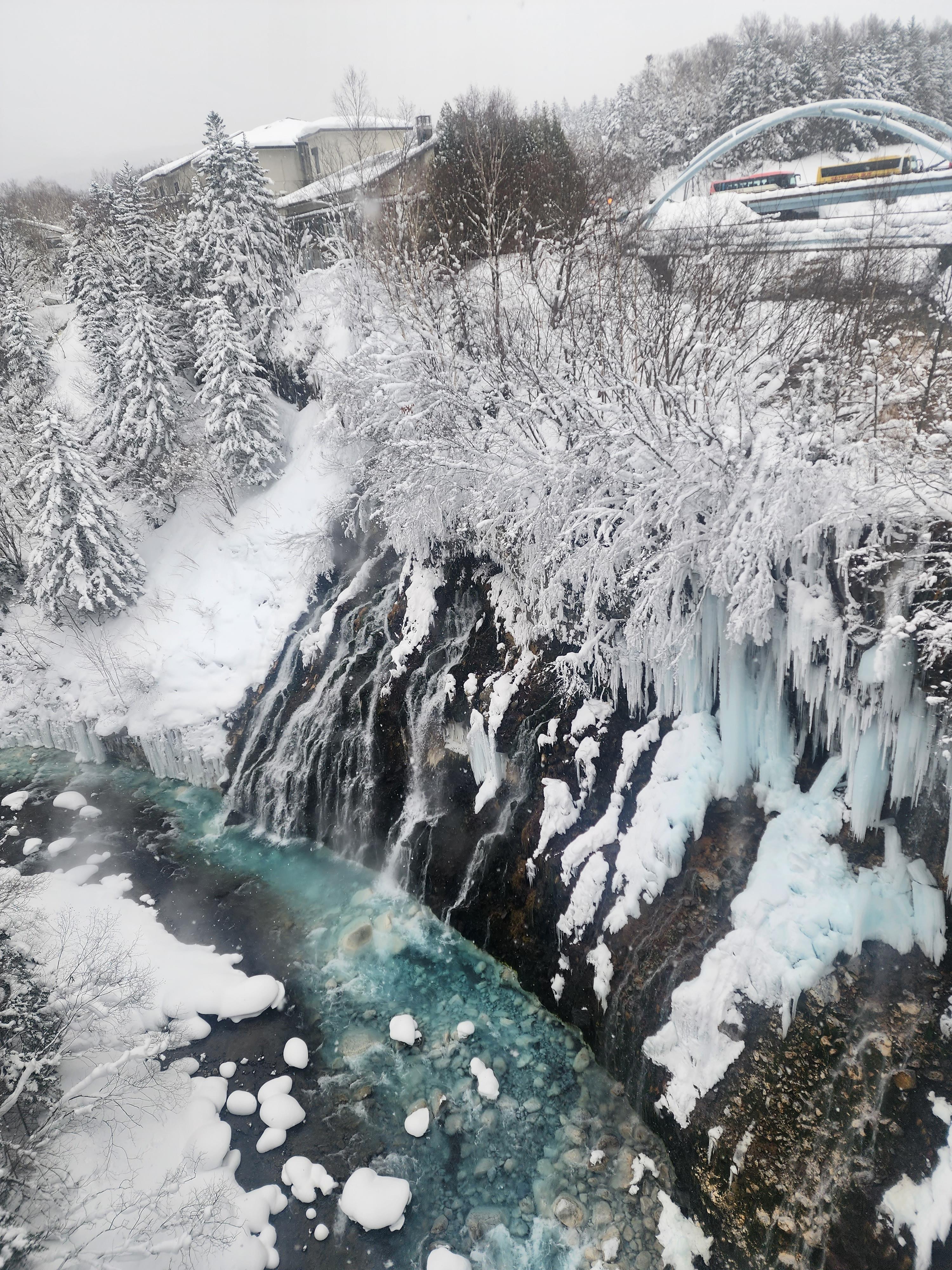 아래의 물들이 한겨울에도 얼지 않고 민트빛 푸른색을 띠는 이유는 사실 온천수라 그렇다네요.
