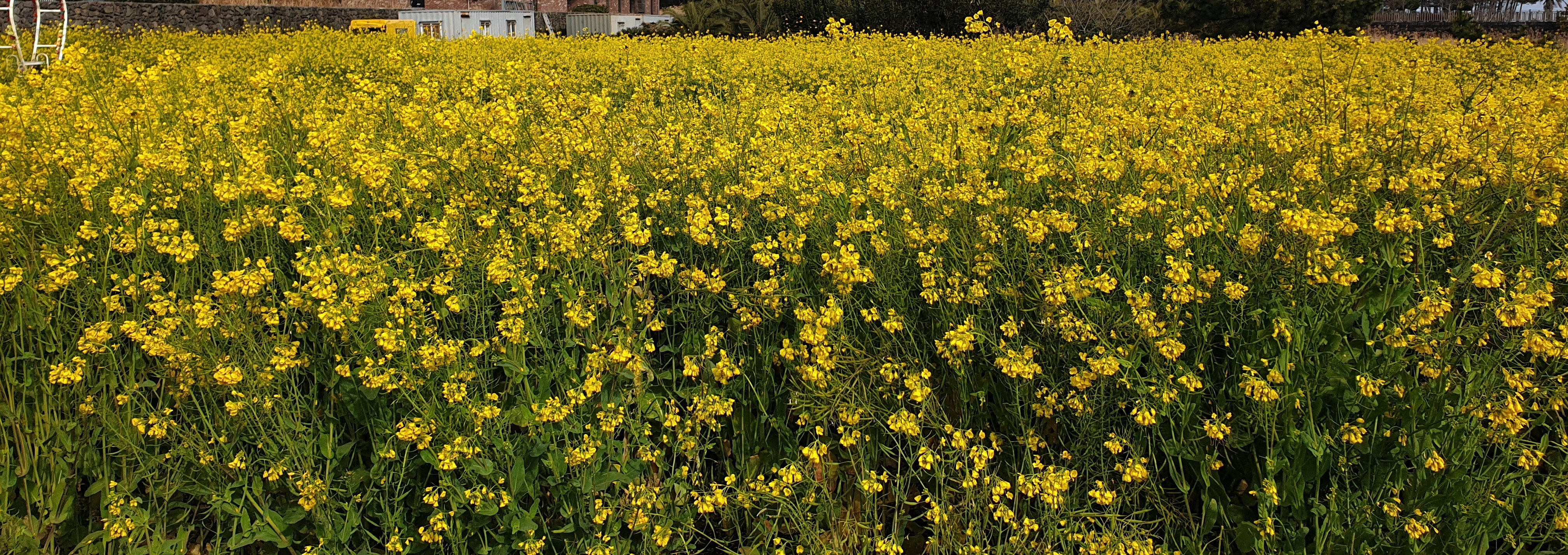 유채꽃은 봄철에 만개하여 황금빛 꽃밭을 연출하는 아름다운 꽃으로, 주로 노랑 라벤더색의 화려한 꽃잎을 가지고 있습니다. 제주도를 비롯한 한국의 여러 지역에서 자주 볼 수 있는 유채꽃은 산발적으로 피어나는데, 농업에서도 유용한 식물로 사용되며, 꽃말은 '순결'이나 '희망'입니다. 또한 유채의 꽃잎은 식용으로 사용되기도 합니다. 제주에서는 3월-4월경에 만개하는데 기온에 따라 1월 말부터 유채꽃을 볼 수도 있습니다. 제주도에서는 유채꽃을 볼 수 있는 곳이 많이 있습니다. 산방산 주변, 용눈이 오름, 섭지코지, 서귀포 올레시장 주변 그리고 허브동산. 그중에 이곳 유채꽃 재배단지에서의 구경은 성산일출봉을 배경으로 노랗게 만개한 유채꽃벌판을 카메라에 함께 담을 수 있다는 것이 큰 매력이라 하겠습니다. 또한 다른 관광지와 달리 입장료가 무료이므로 또 하나의 장점이 있습니다. 봄철의 따스한 햇살 아래 유채꽃을 감상하며 산책하는 것은 봄의 정취를 느끼기에 아주 좋은 방법입니다.