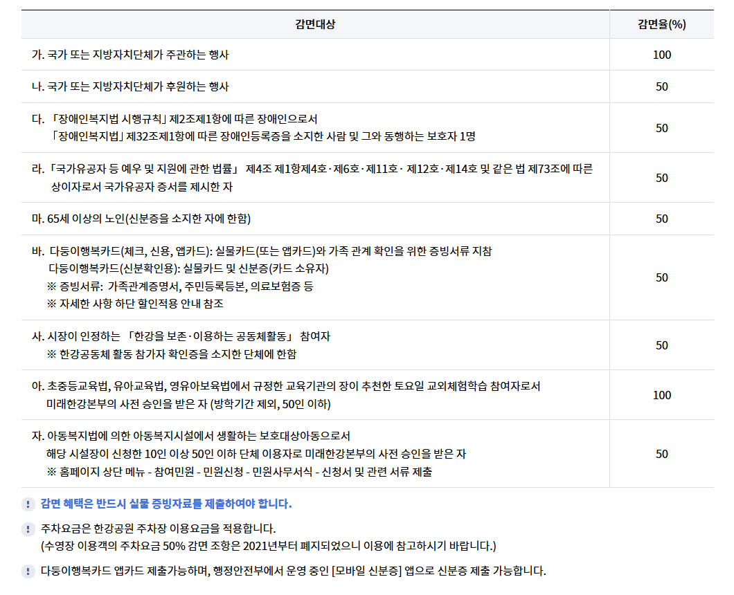 ※ 운영기간 중 휴무일은 없으나, 장마나 폭우로 인한 침수 위험시 운영 중단할 수 있습니다.