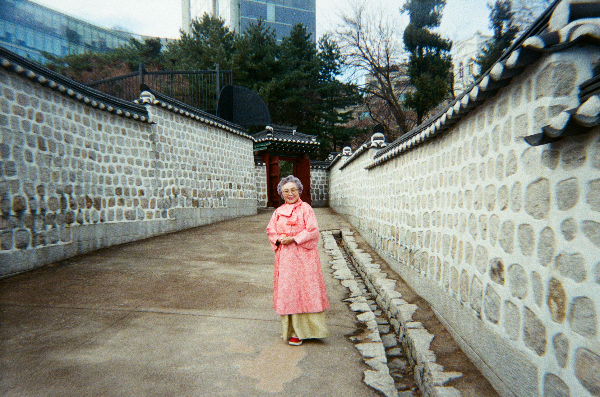 한복을 입고 온 엄마의 사진을 찍어드리며